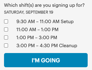 Shifts are displayed on the event form so supporters can sign up for shifts when they RSVP.