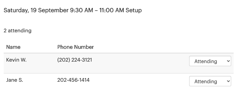 Event hosts can easily manage their shift signups, checking people into the event as they arrive.